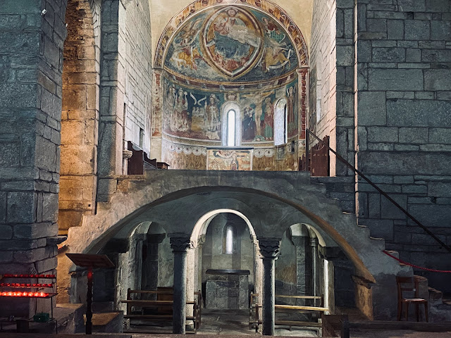Giornico oltre ad essere famosa per la battaglia dei Sassi Grossi, comunque non l'unica avvenuta in val Leventina, lo é anche per il numero di chiese: ben 7! Una di questa é quella di San Pellegrino, che resta un po' fuori dal centro.