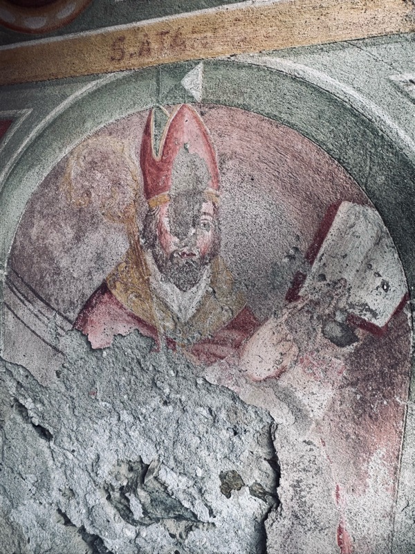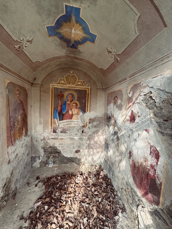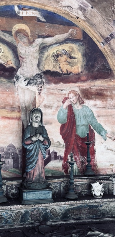 Metaforicamente sembra rispiegare lo stato attuale della chiesa dalle nostre latitudini, in pieno abbandono con sempre meno credenti a sbucciarsi le ginocchia sui banchi in chiesa. Quello che rimane sono queste testimonianze, che oltre ad essere testimoni di fede e credenze dal sapore sempre più antico, rappresentano delle vere e proprie opere d’arte, le uniche sempre presenti anche nelle valli più povere.