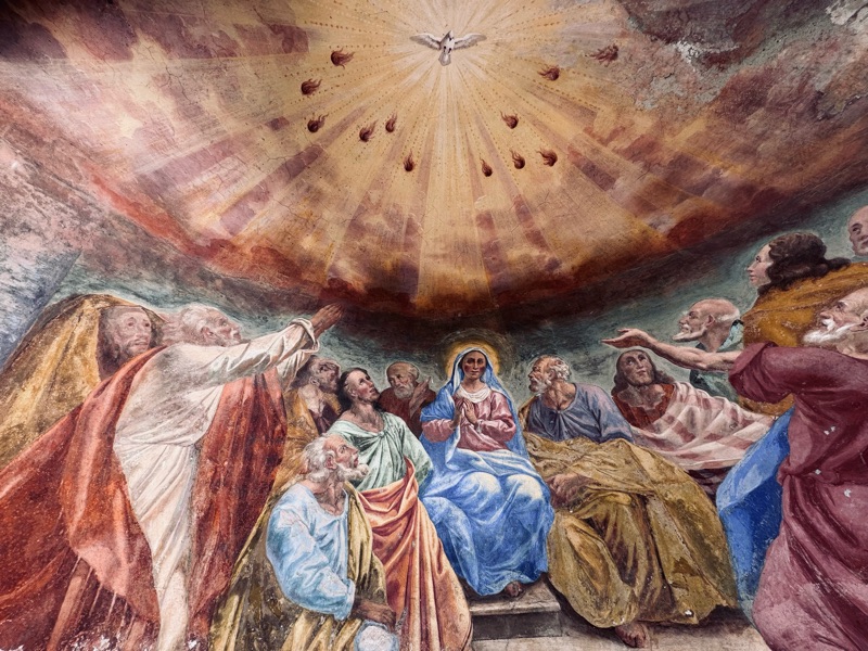 La scala si rivela essere attrezzo utilizzato dal restauratore, gli affreschi all’interno sono già stati restaurati e sono un bel colpo d’occhio. Ma non devo lasciarmi sviare dall’obiettivo odierno: di morte neanche l’ombra.