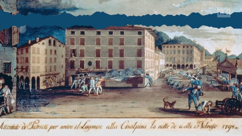 A Lugano esisteva, alla fine del secolo XVIII, un Corpo di Volontari, di sentimenti elvetici. Negli stessi anni, violenti e profondi sconvolgimenti si avveravano nella vicina Lombardia: il Generale Bonaparte la invadeva per ordine del Direttorio di Francia, ne cacciava gli Austriaci, la costituiva in Repubblica Cisalpina.