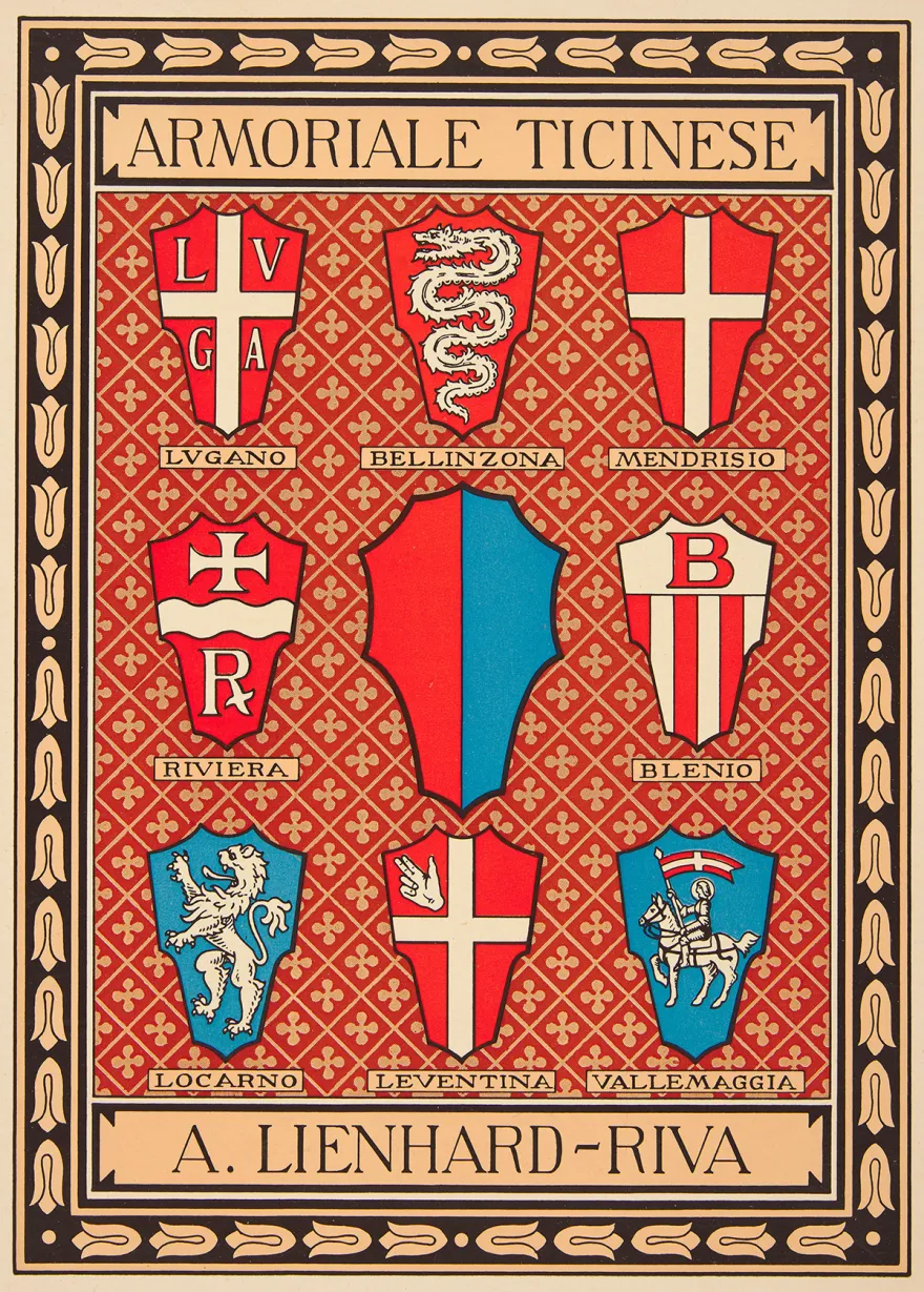 Gli stemmi degli otto distretti del Canton Ticino, fondato nel 1803.