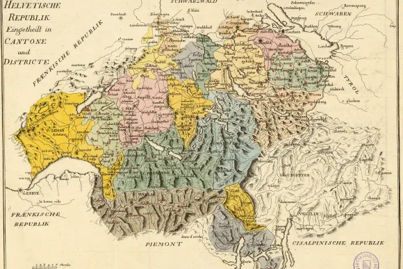 Nell’estate del 1798, l’intervento militare francese trasformò l’ex Confederazione in uno Stato unitario centralizzato sul modello francese. I generali francesi volevano unire gli ex Paesi soggetti delle Alpi meridionali in un unico Cantone, ma non ci riuscirono. Due Cantoni, Lugano e Bellinzona, furono creati in fretta e furia a seguito di profonde differenze locali e di forti richieste di autonomia.